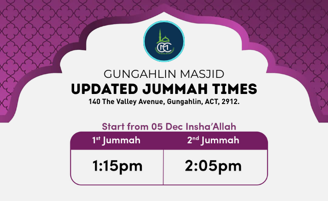 Please note that starting this Friday 5 Dec 2025, the Jummah prayer times have been updated.