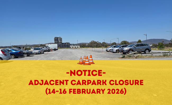 Please be advised that the adjacent car park will remain closed from Saturday morning (14 February 2026) until Monday morning (16 February 2026) to allow for essential car park maintenance tasks. During this period, all visitors and community members are kindly requested to use the alternative car park facilities.