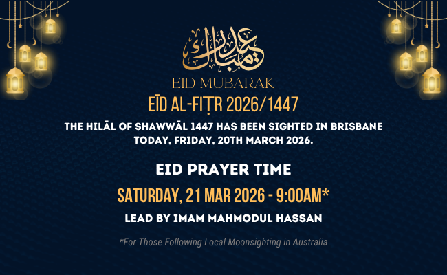 Alhamdulillah, The Hilāl of Shawwāl 1447 has been sighted in Brisbane Today, Friday, 20th March 2026. Saturday 21st March Will be 'EĪd al-Fiṭr In Sha Allah.