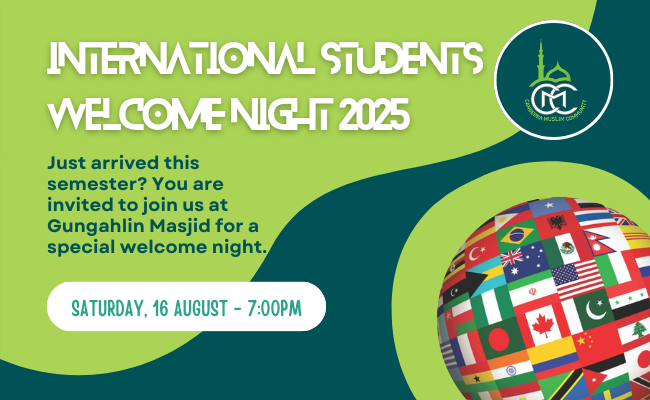 Just arrived this semester? You are invited to join us at Gungahlin Masjid for a special welcome night.